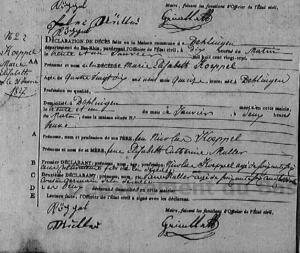 Décès : 31 janvier 1827 à Dehlingen 67430 Alsace ( Source )
