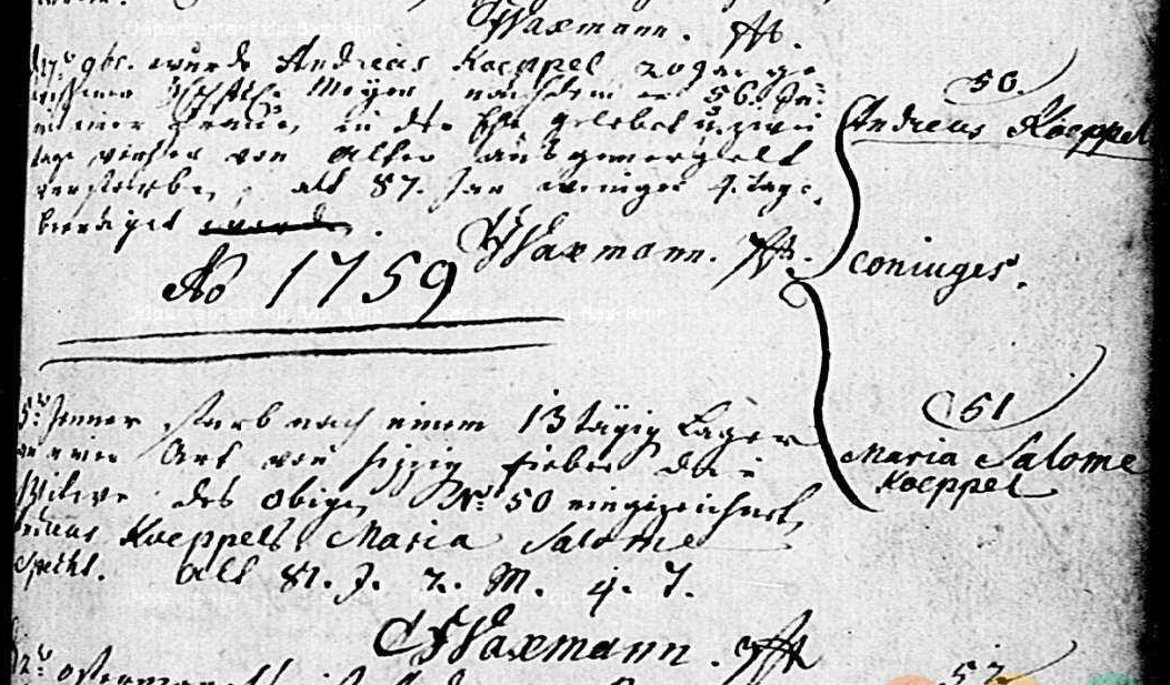 Père : KOEPPEL Johann Nicolaus ( ~ 1675 - 1757 )