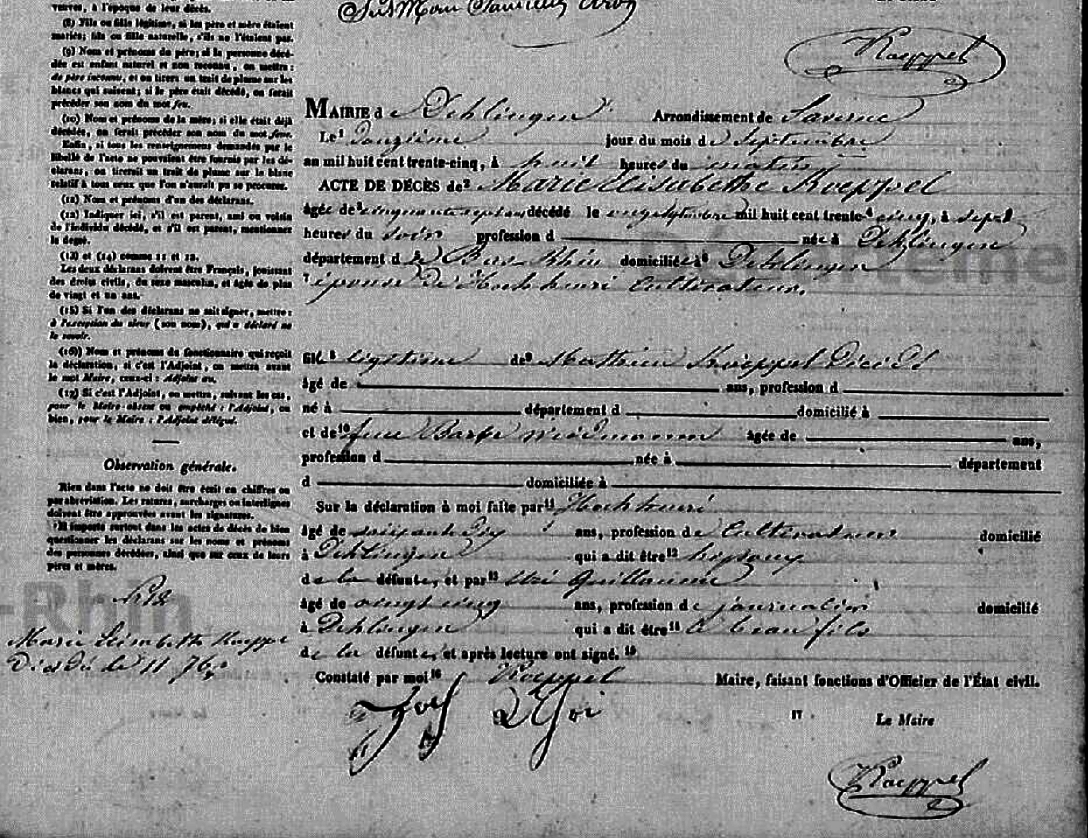 Décès : 11 septembre 1835 à Dehlingen 67430 Alsace ( Source )