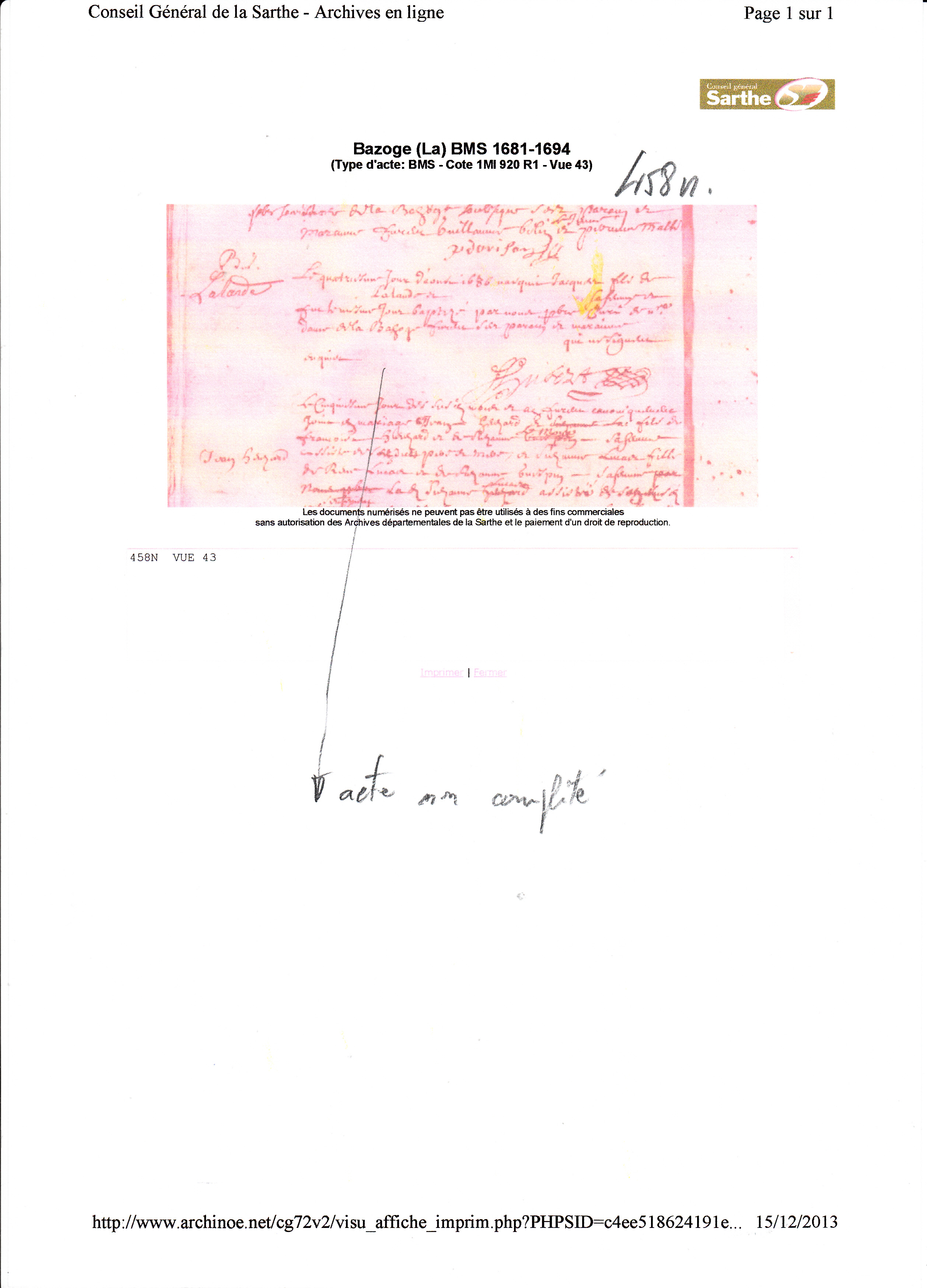 Décès : avant 1674 à La Bazoge 72650