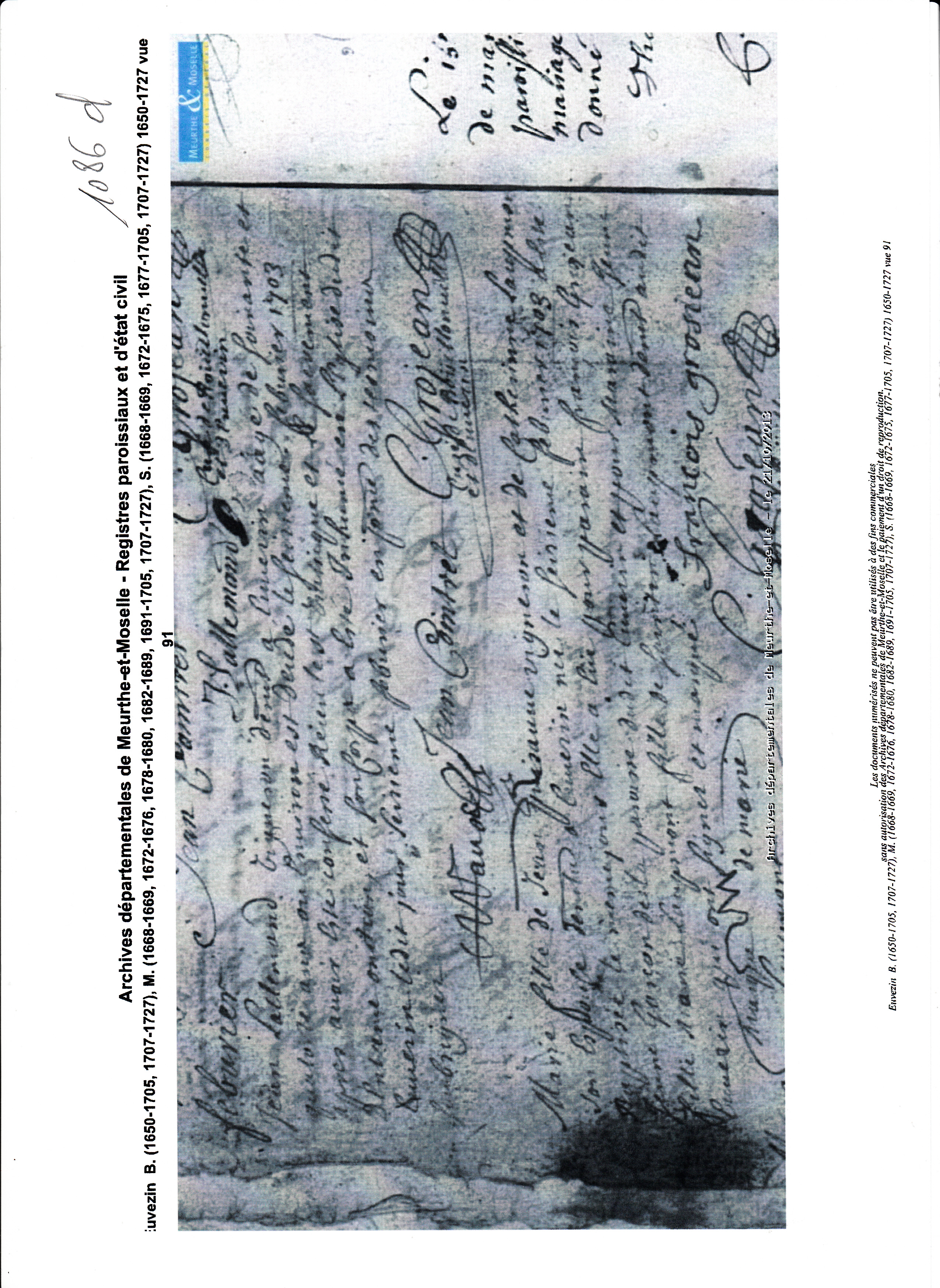 Mariage : 13 janvier 1699 à Euvezin 54470 ( Source )