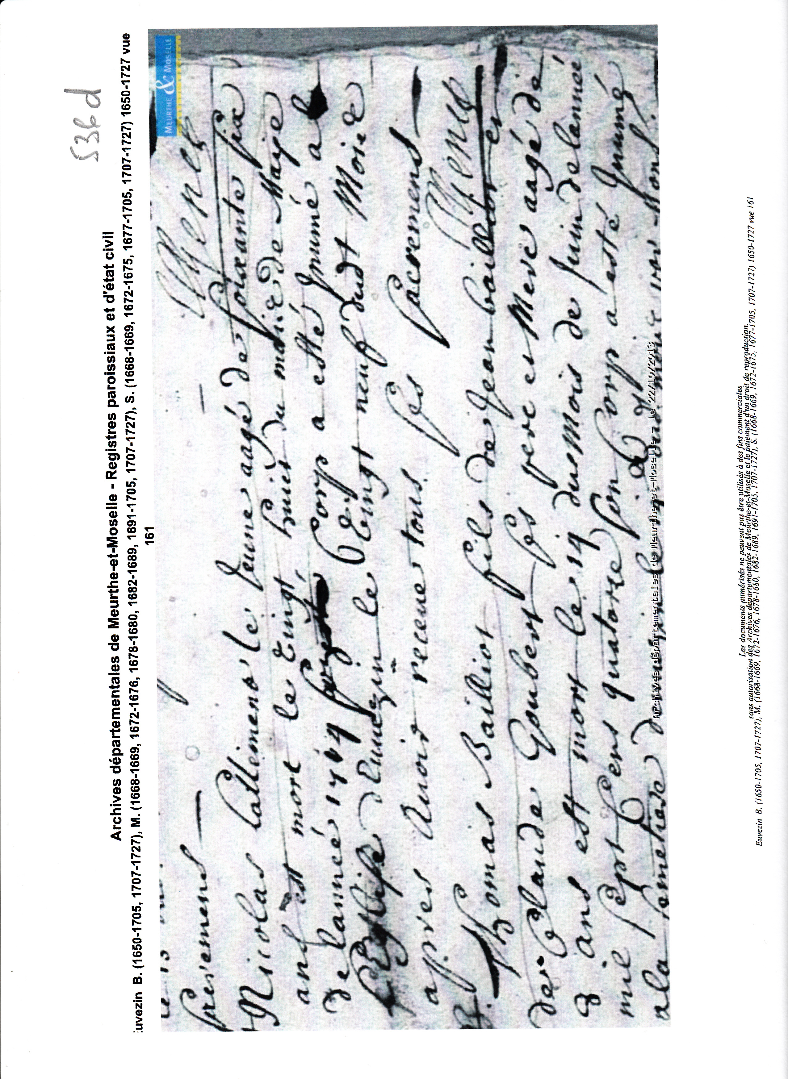 Naissance : vers 1653 à Euvezin 54470 Décès : 1er septembre 1731 à Euvezin 54470