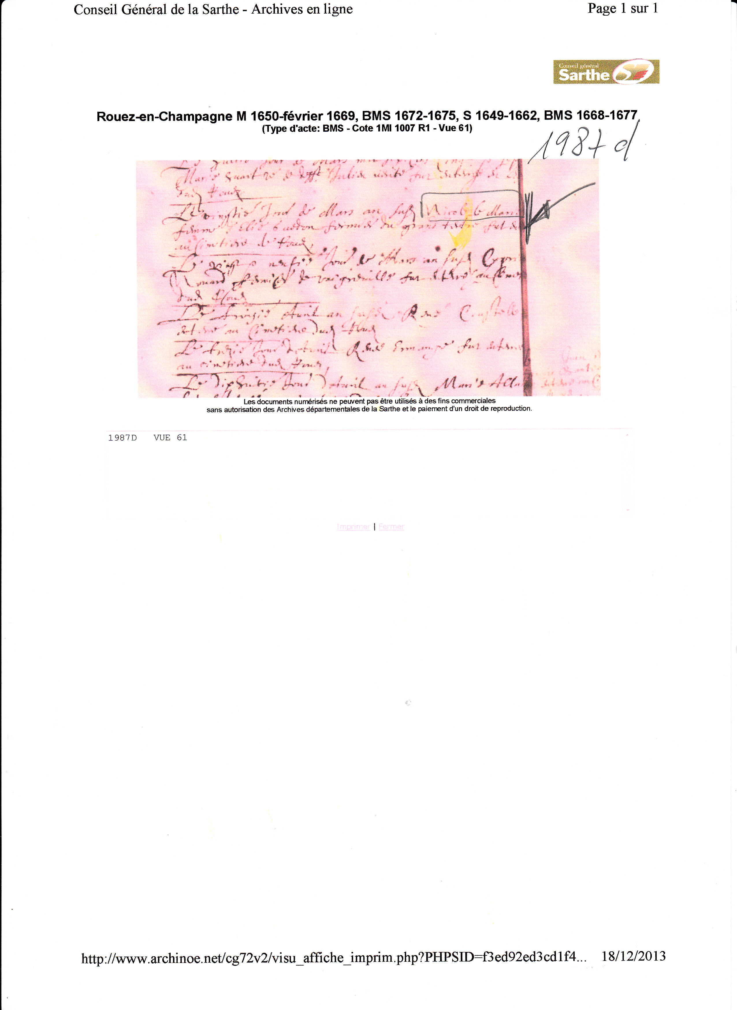 Décès : 20 mars 1657 à Rouez 72140 ( Source )