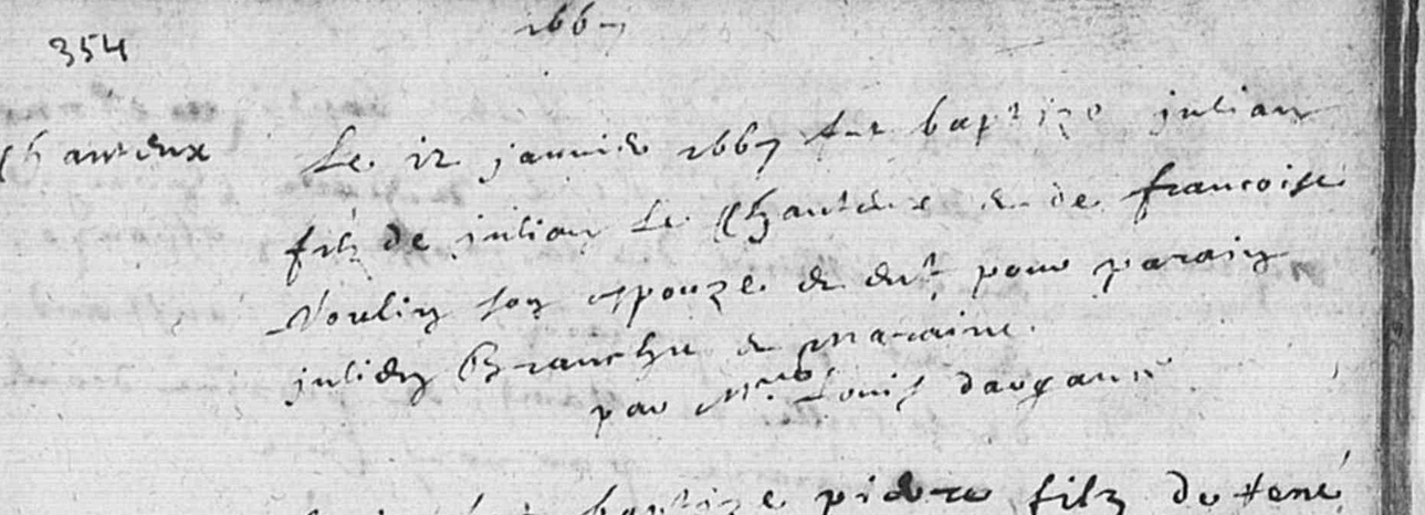 Père : LECHANTEUX Julien Julian ( 1630 - 1698 )