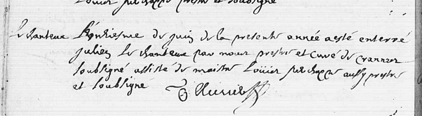 Décès : 11 juin 1698 à Crannes-en-Champagne 72540 ( Source )