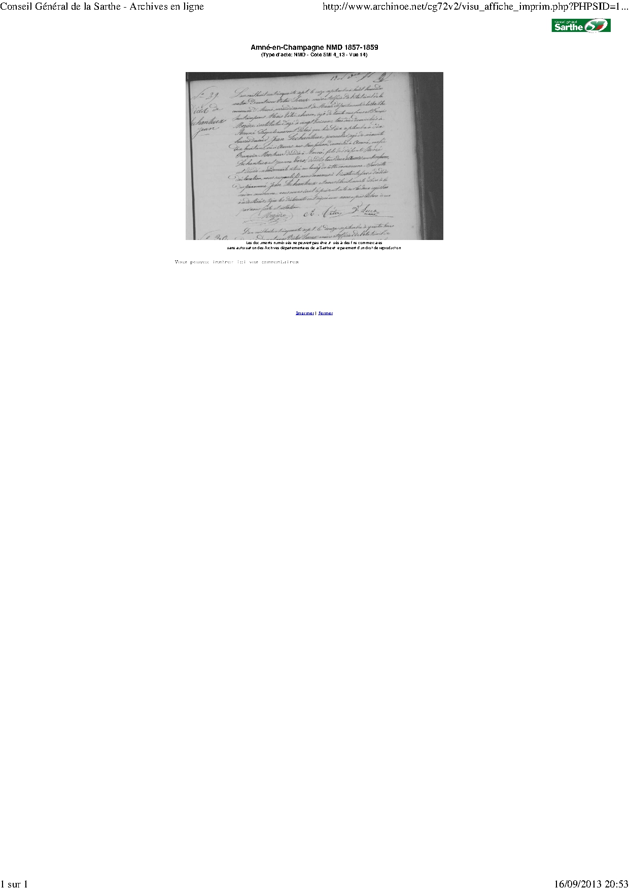 Décès : 10 septembre 1857 à Amné 72540 ( Source )