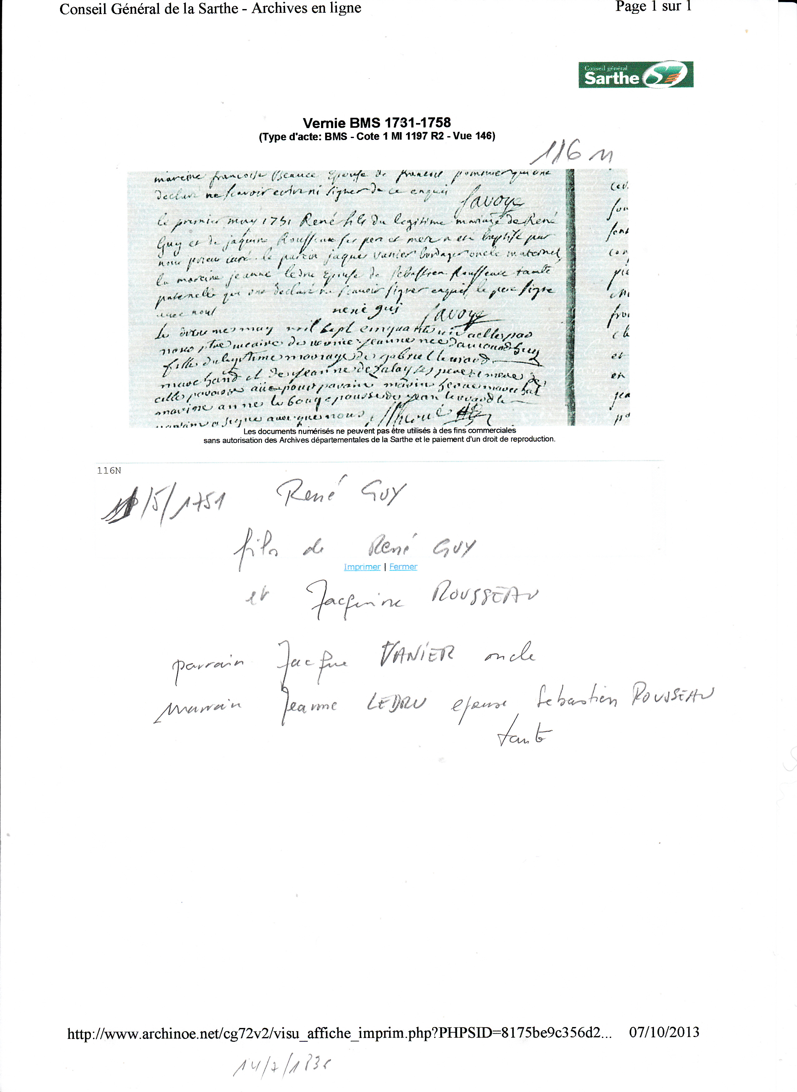 Naissance : 10 mai 1751 à Vernie 72170 ( Source )