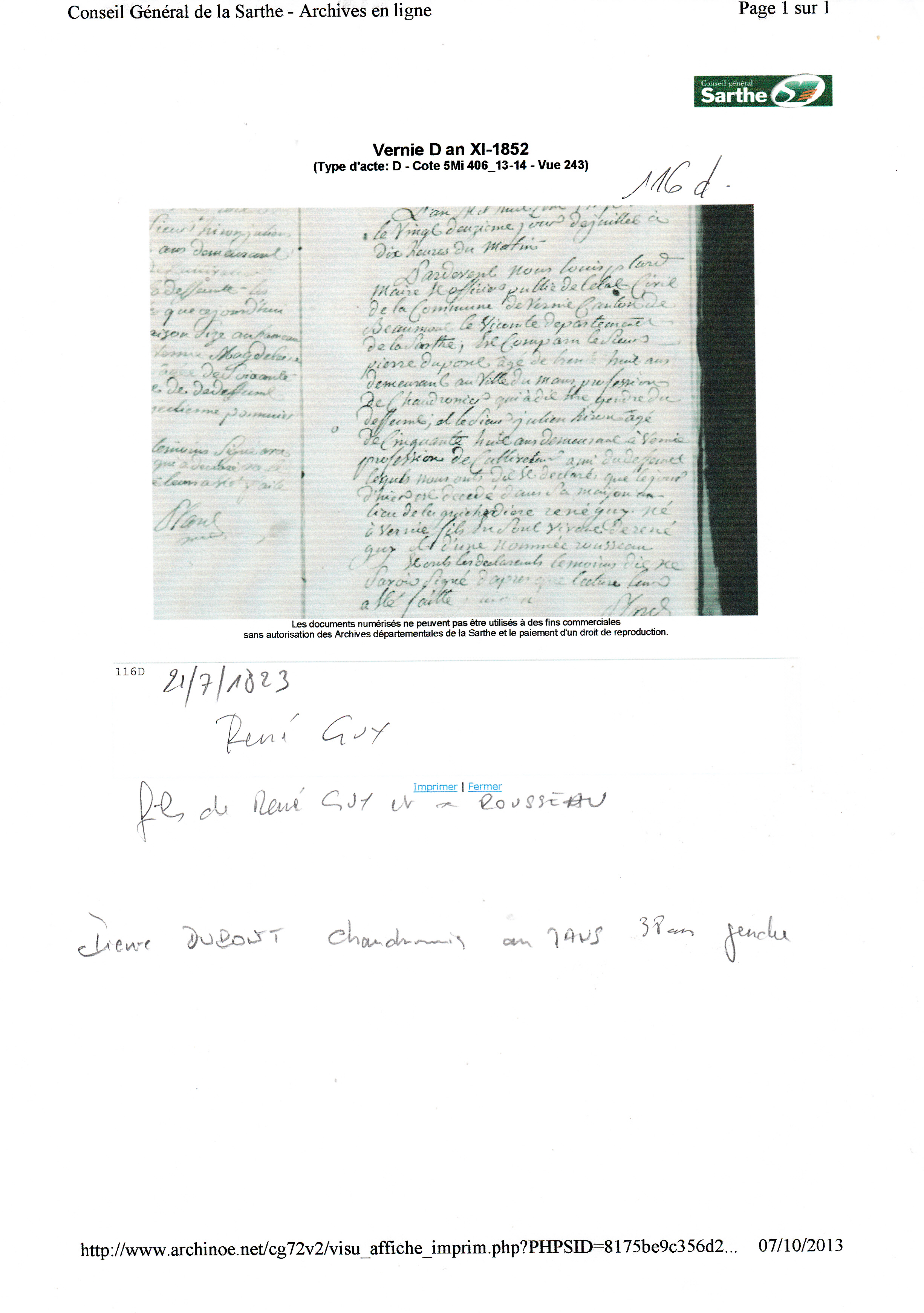 Décès : 22 juillet 1823 à Vernie 72170 ( Source )