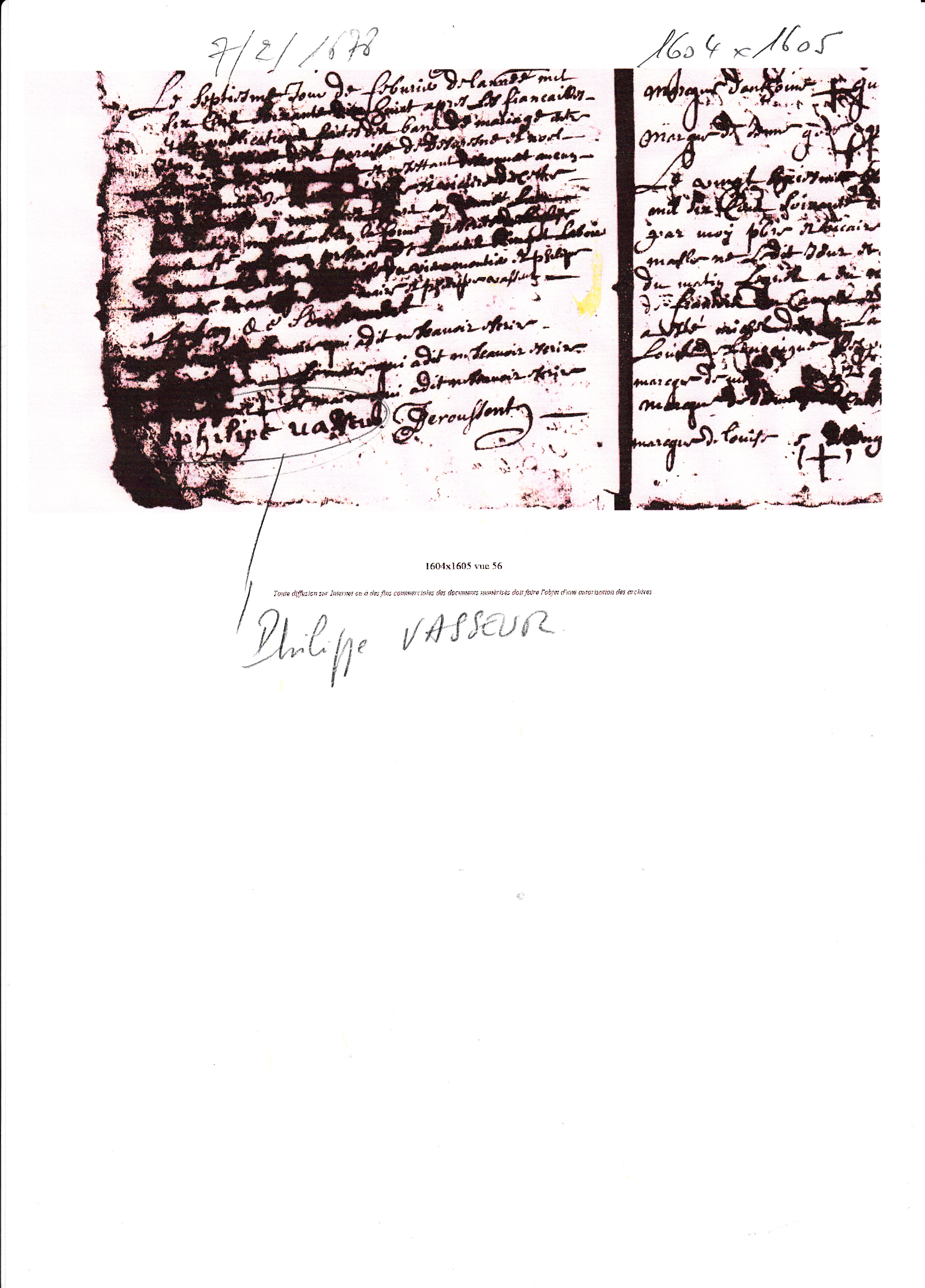 Union : VASSEUR Philippe ( 1657 - 1733 )