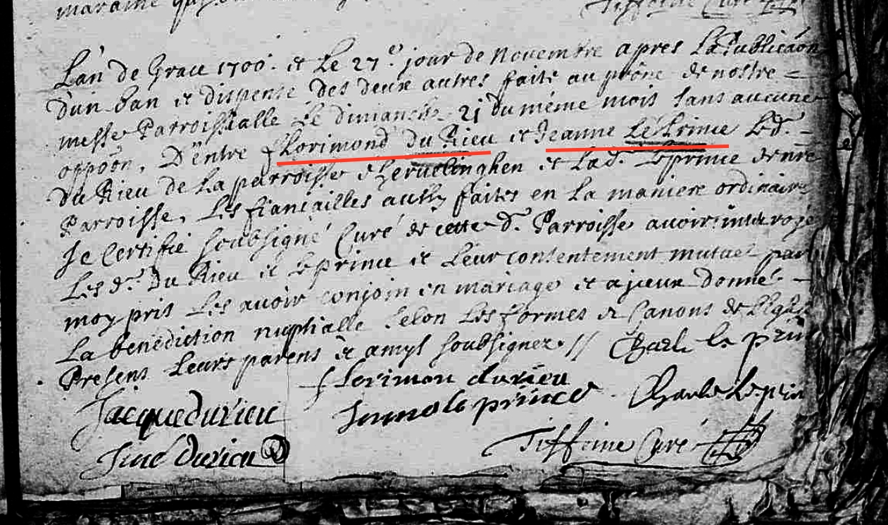 Mariage : 27 novembre 1700 à Sangatte 62231 ( Source )