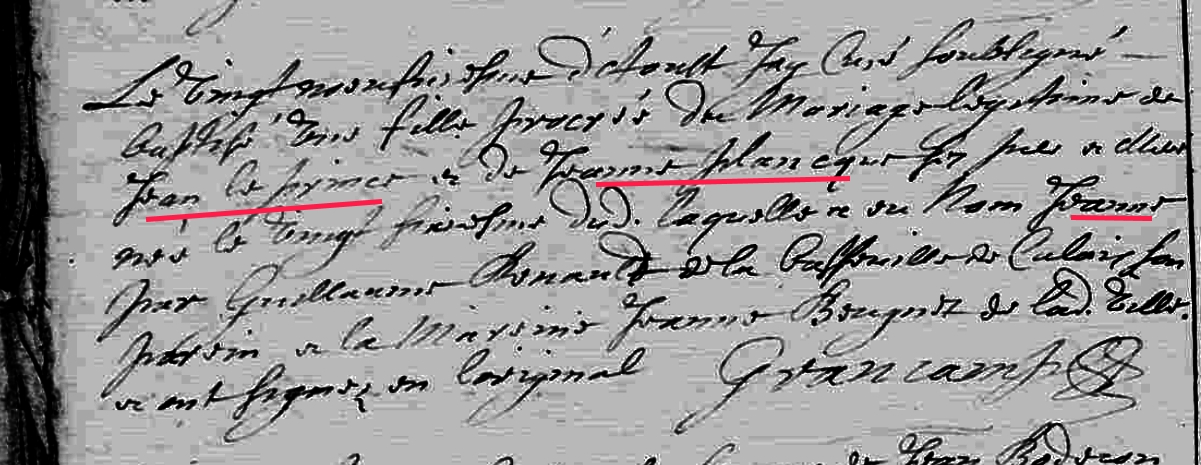Mère : PLANQUE Jeanne ( ~ 1660 - 1696 )