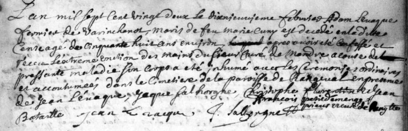 Père : LEVACQUE Jacques ( ~ 1622 - ? )