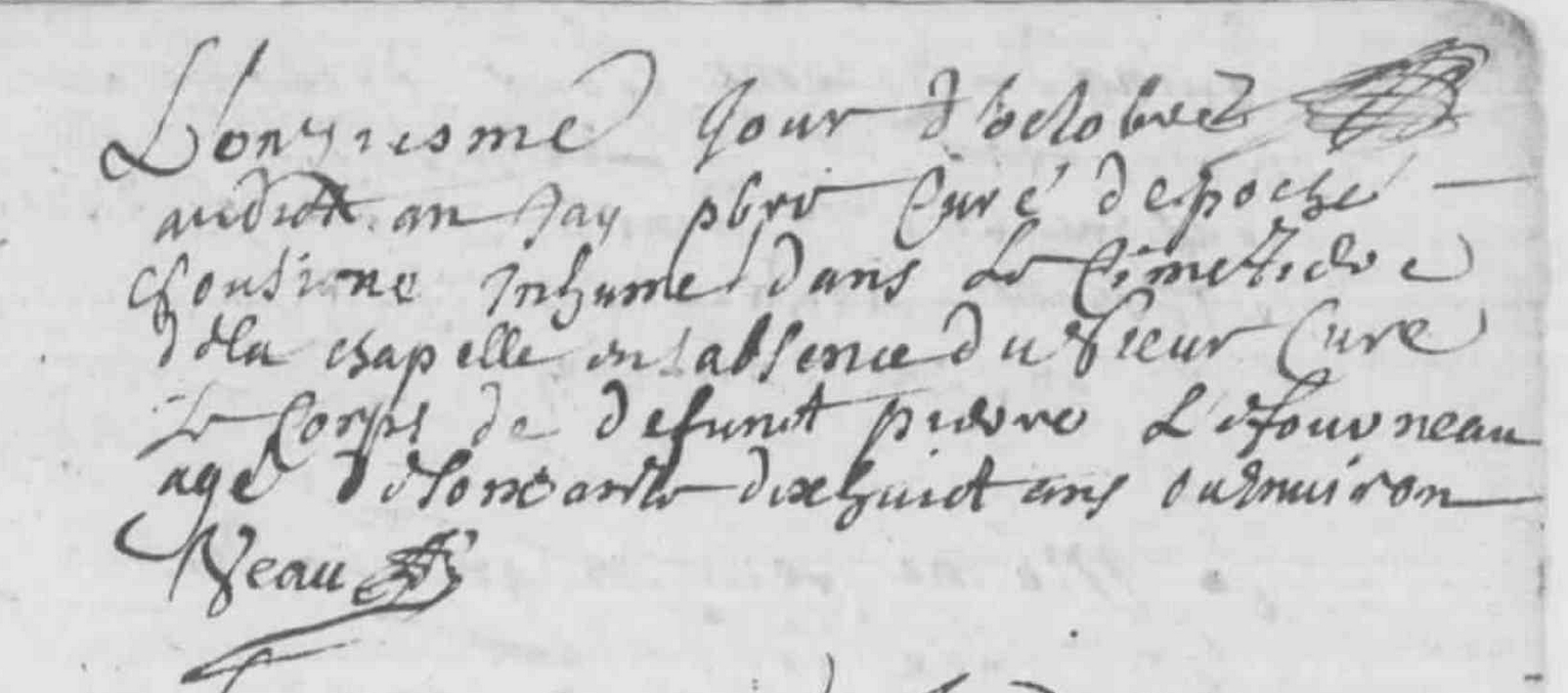 Décès : 11 octobre 1707 à La Chapelle-Saint-Fray 72240 ( Source )