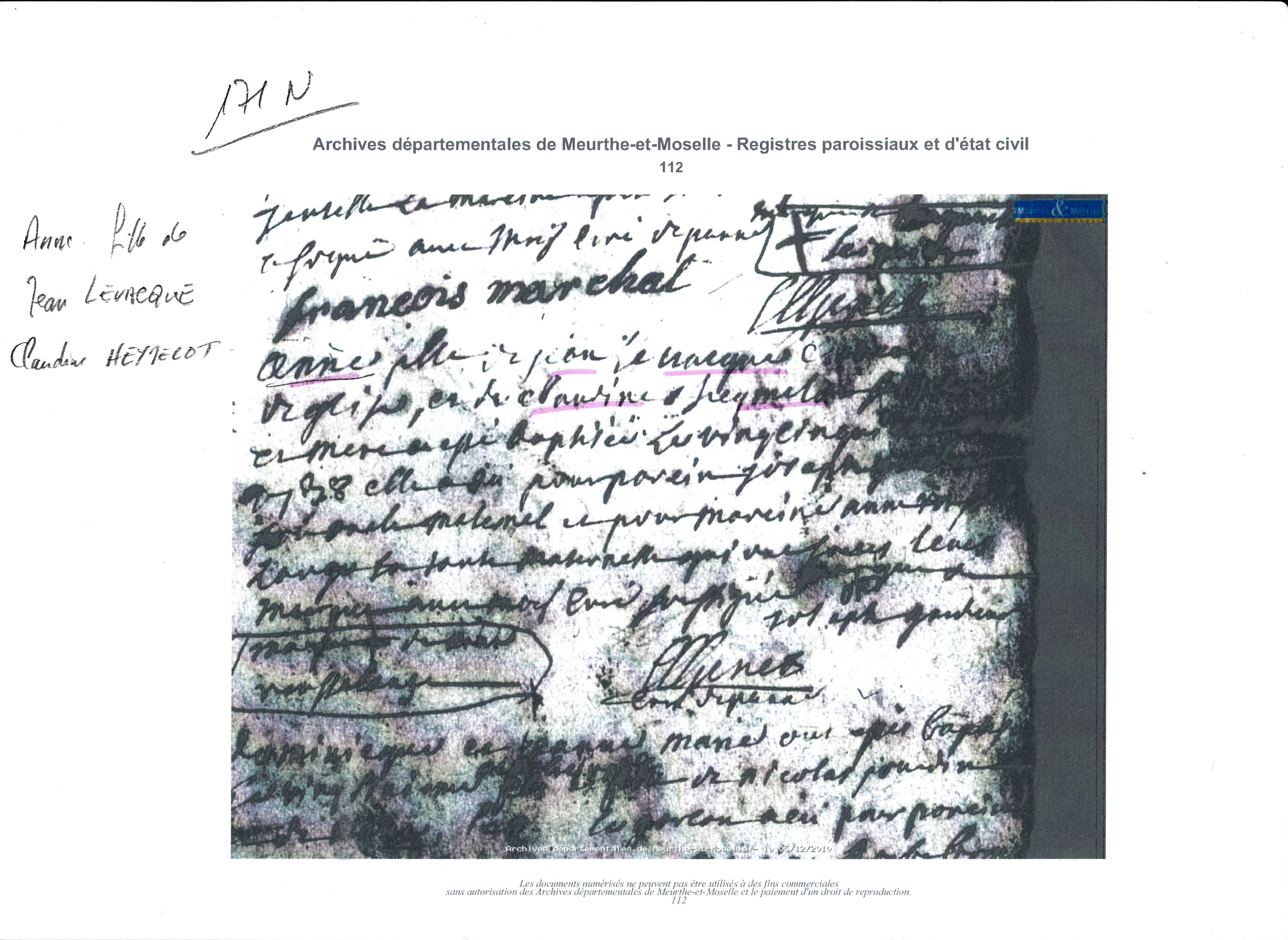 Père : LEVACQUE Jean ( (c) 1687 - 1754 )