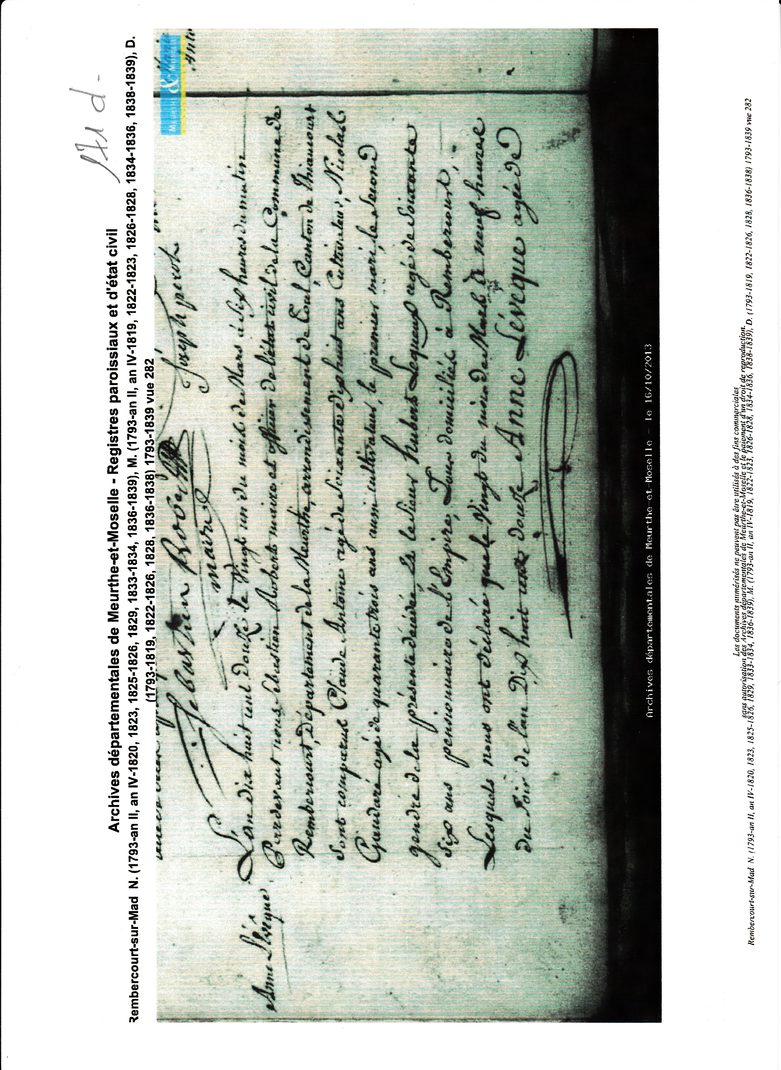 Décès : 20 mars 1812 à Rembercourt-sur-Mad 54470 ( Source )