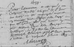 Mariage : 18 février 1659 à La Bazoge 72650 ( Source )