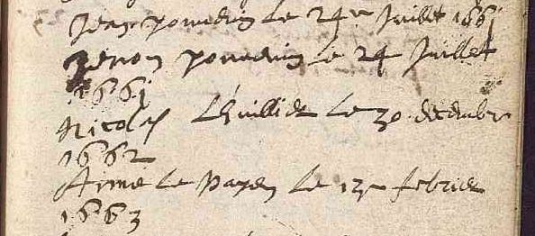 Il décède avant le 19 novembre 1594, date à laquelle Marguerite LELONG, remariée avec Jean Hervé, assiste au contrat de mariage de leur fille Martine