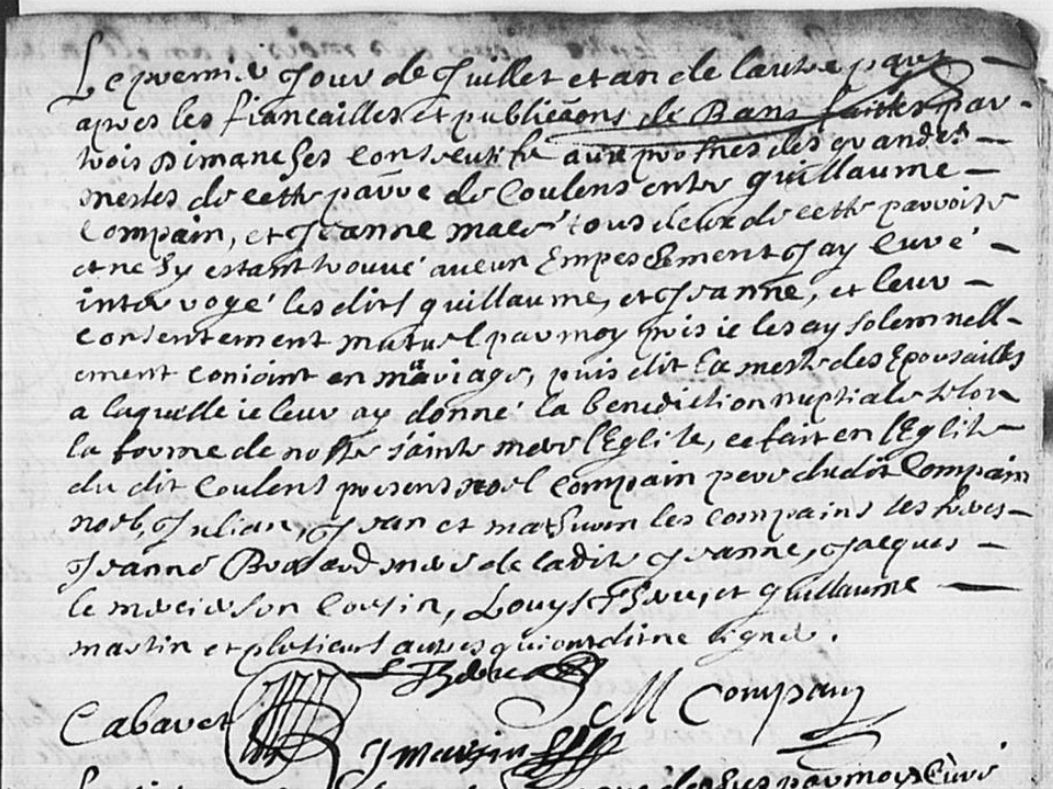 Mariage : 1er juillet 1687 à Coulans-sur-Gée 72550 ( Source )