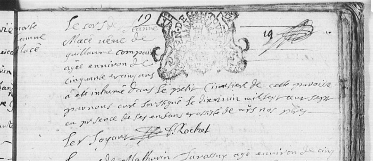 Naissance : calculée 1652 Décès : 10 juin 1707 à Coulans-sur-Gée 72550 ( Source )