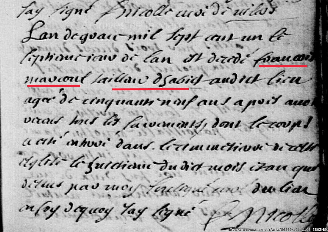 Naissance : calculée 1642 Décès : 7 janvier 1701 à Villers-en-Argonne 51800 ( Source )