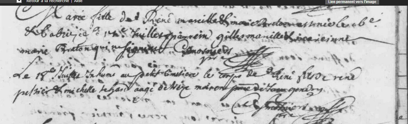Mère : DENAULT Marie Renée ( ? - > 1715 )