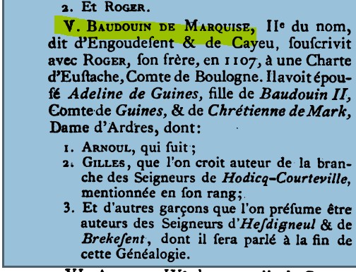 Enfants : MARQUISE (de ) Baudouin II D'Ardres ( ? - ? )