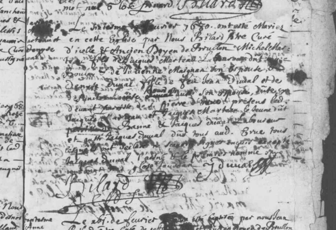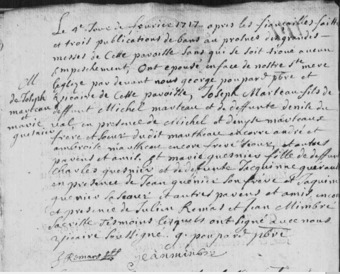 Mariage : 4 février 1717 à Blandouet 53270 ( Source )