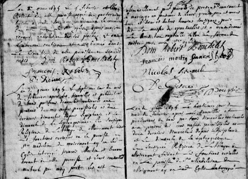 Mariage : 7 février 1695 à Moiremont 51 ( Source )