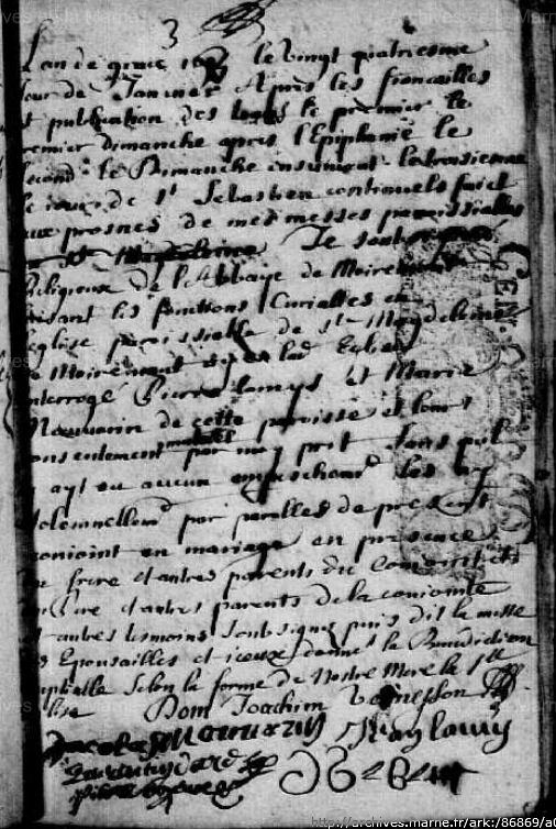 Mariage : 24 janvier 1695 à Moiremont 51 ( Source )
