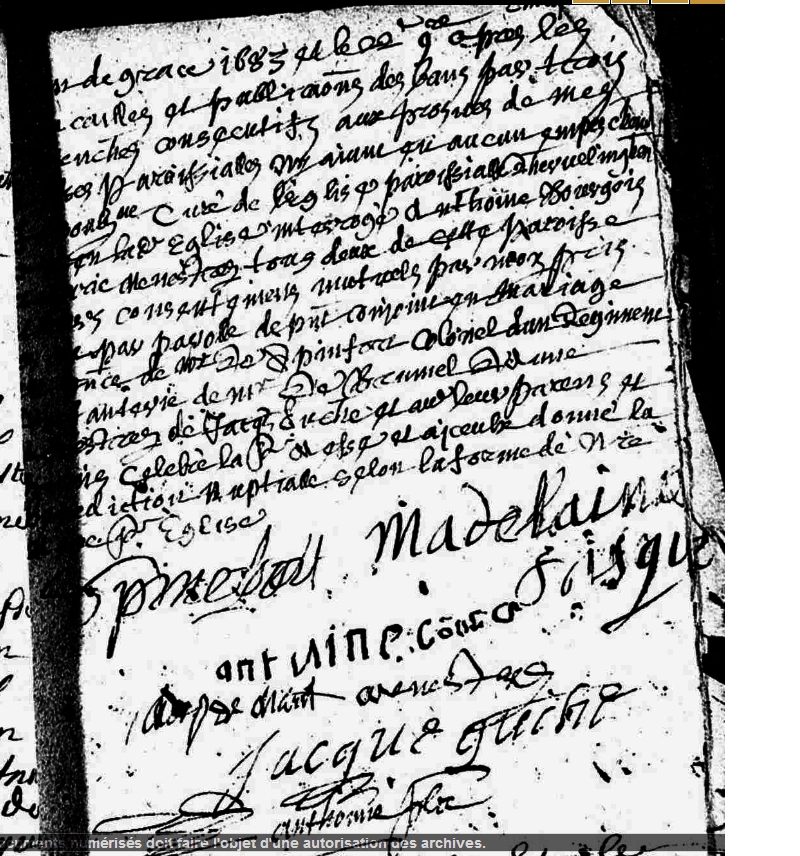 Mariage : vers 1648 à Ségrie 72170