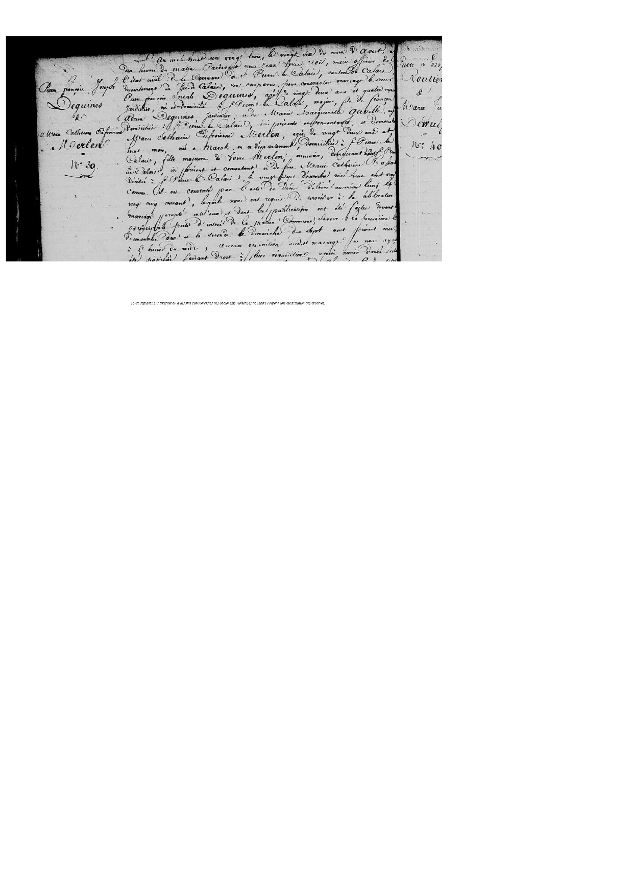 Témoins :DEGUINES Charles Adrien ( (c) 1795 - ? )