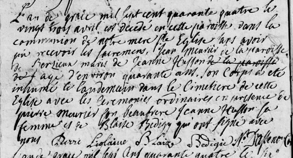 De la paroisse de Somme BionneDécès : 23 avril 1744 à Dommartin-sous-Hans 51800 ( Source )