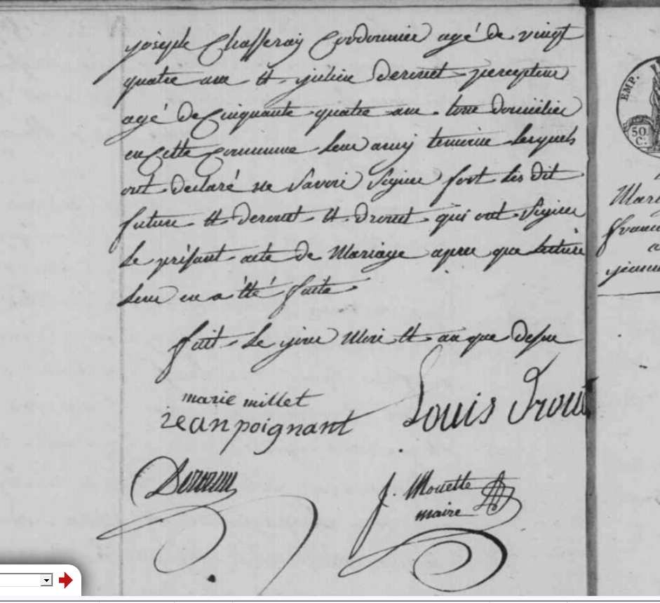 Témoins :POIGNANT Jean Louis ( (c) 1818 - ? )