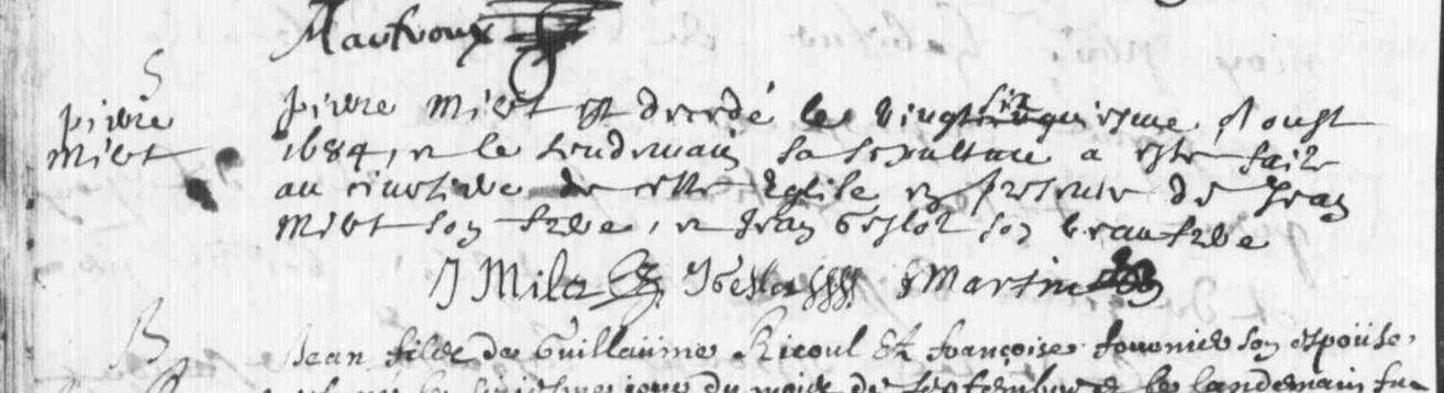 Père : MILET Pierre ( 1626 - 1684 )