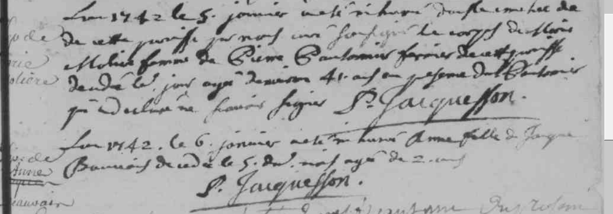 Pas trouvé entre 1700 et 1702Décès : 5 janvier 1742 à Rouessé-Vassé 72140 ( Source )