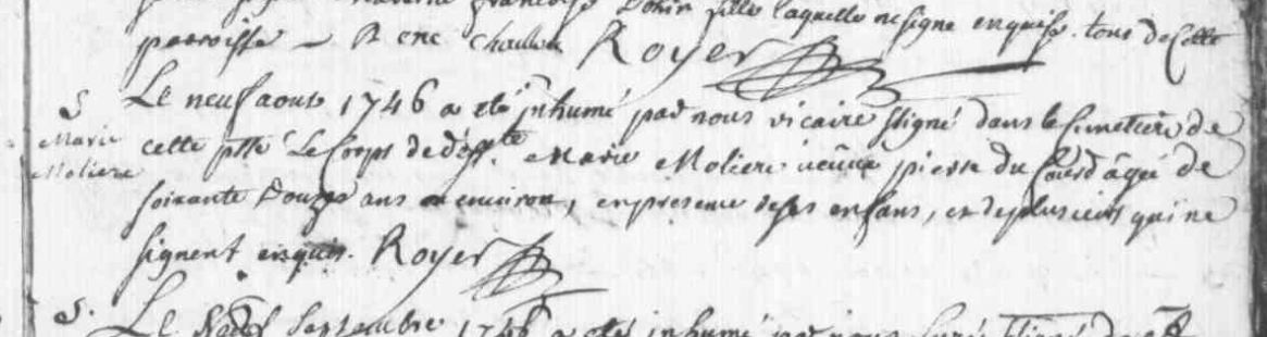 Autre enfant : MOLIERE Marie ( 1701 - 1742 )