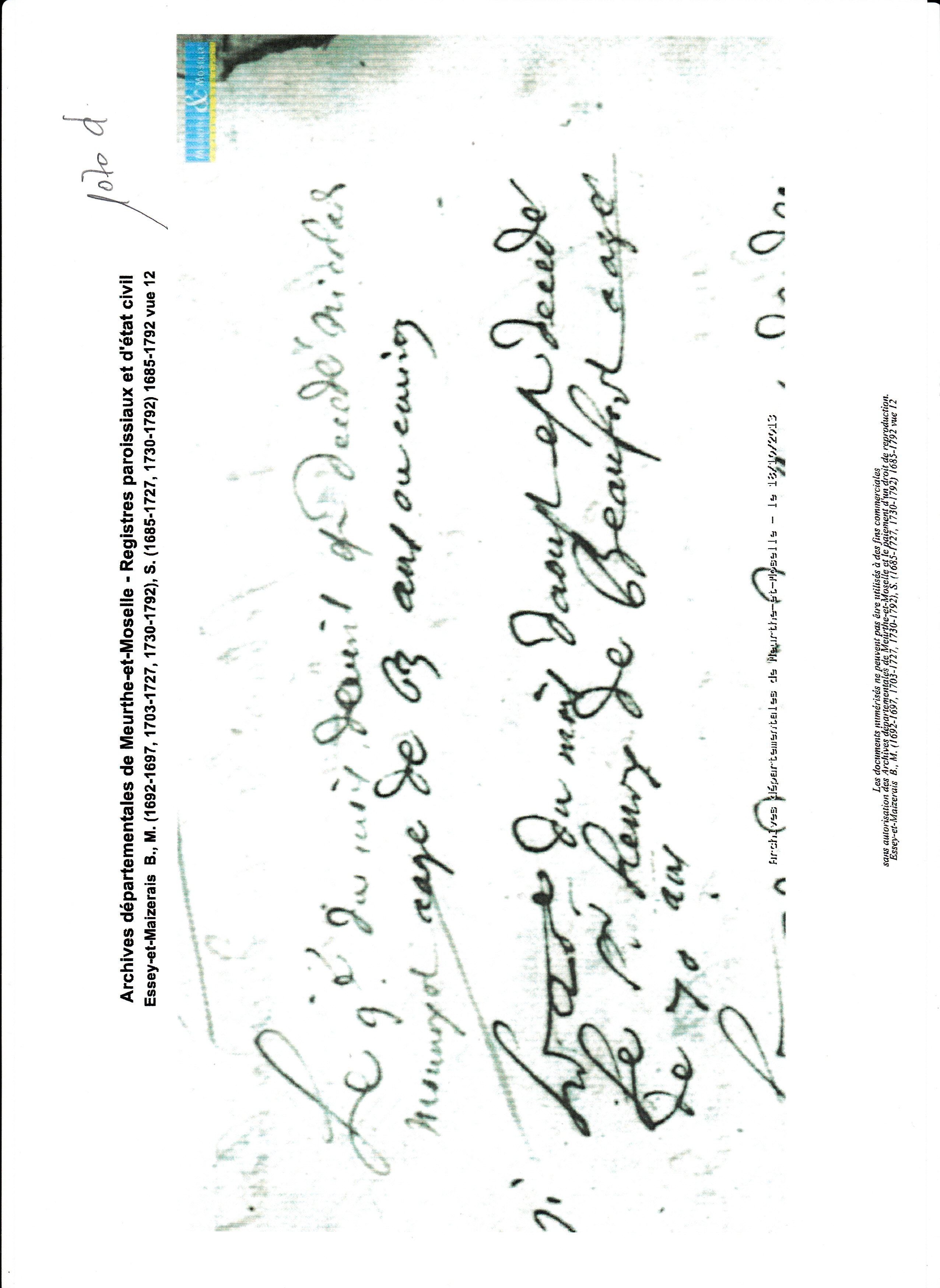 Naissance : vers 1660 à Essey et Maizerais 54470 Décès : entre 1726 et 1739 à Essey et Maizerais 54470