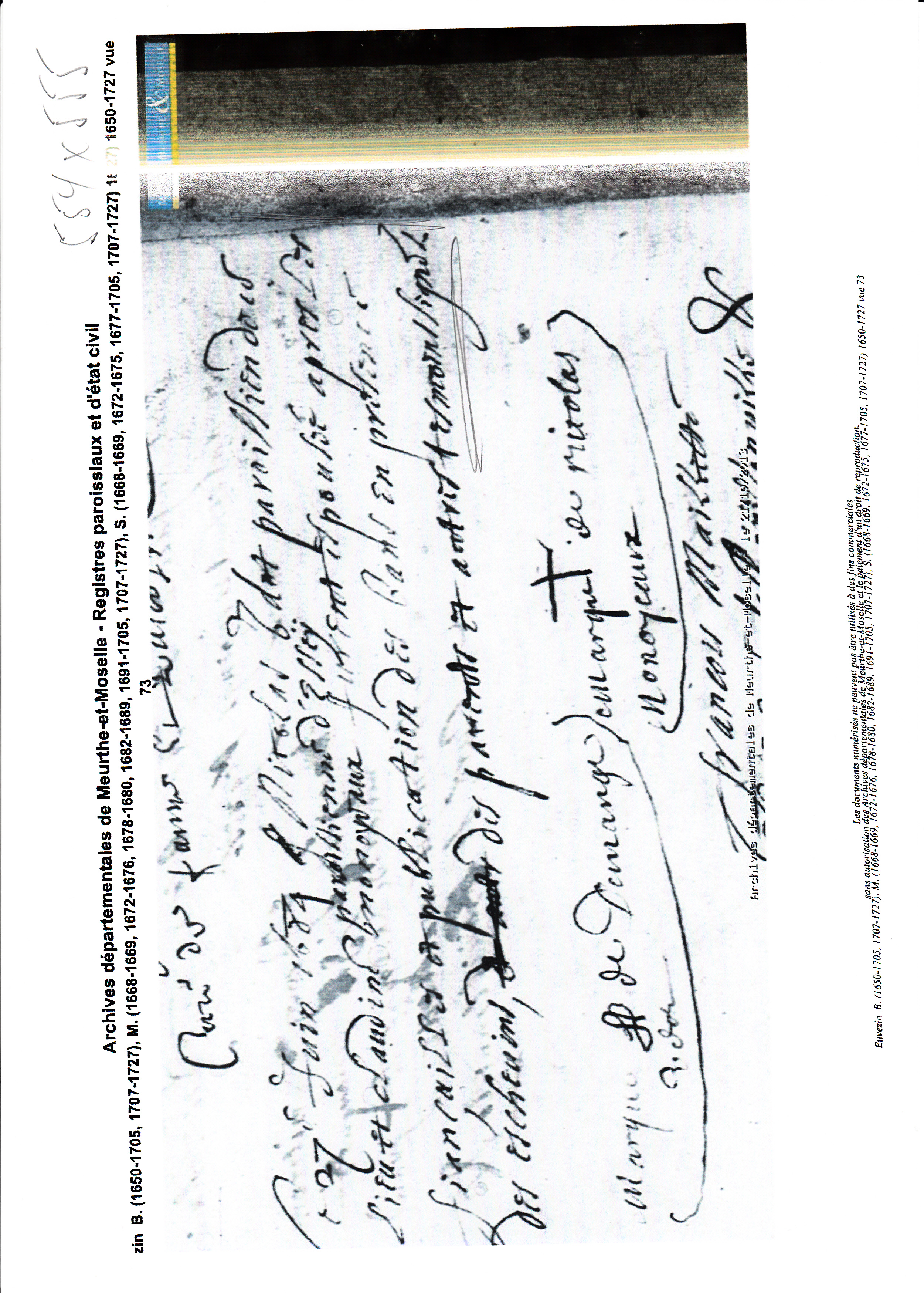 Mariage : 27 juin 1684 à Euvezin 54470 ( Source )