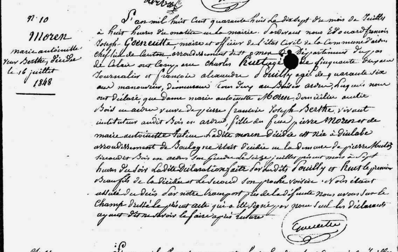 Décès : 16 juillet 1848 à Bois en Ardre 62000 ( Source )