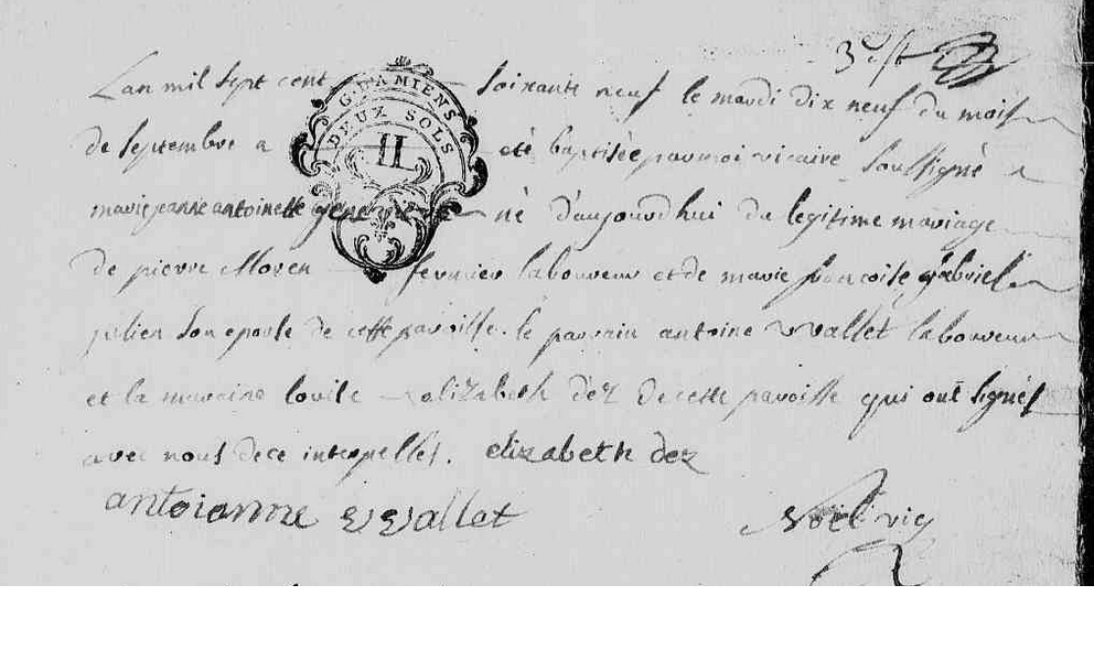 Mère : QUIERTANT Marie Antoinette ( 1690 - 1775 )
