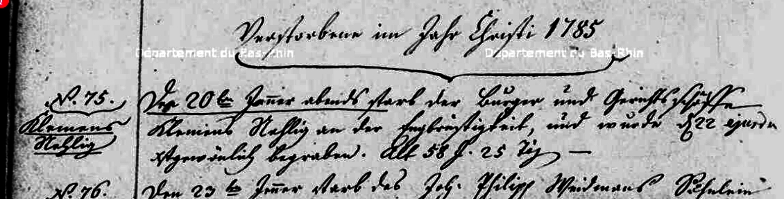 Décès : 20 janvier 1785 à Dehlingen 67430 Alsace ( Source )