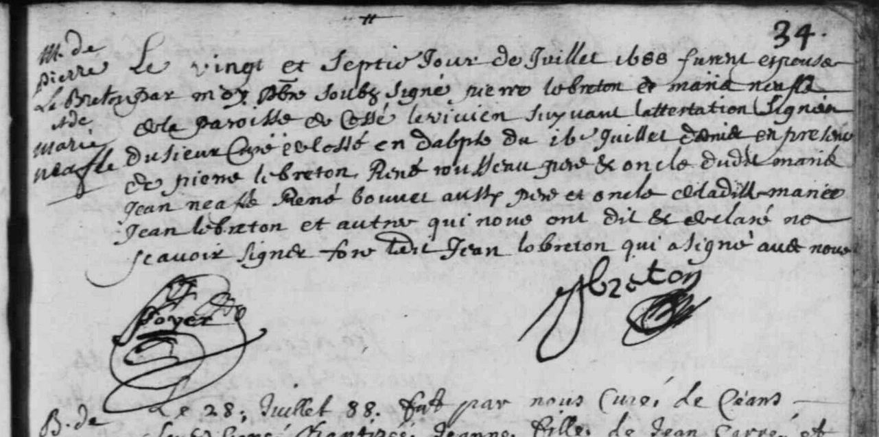 Mariage : 27 juillet 1688 à Méral 53230 ( Source )