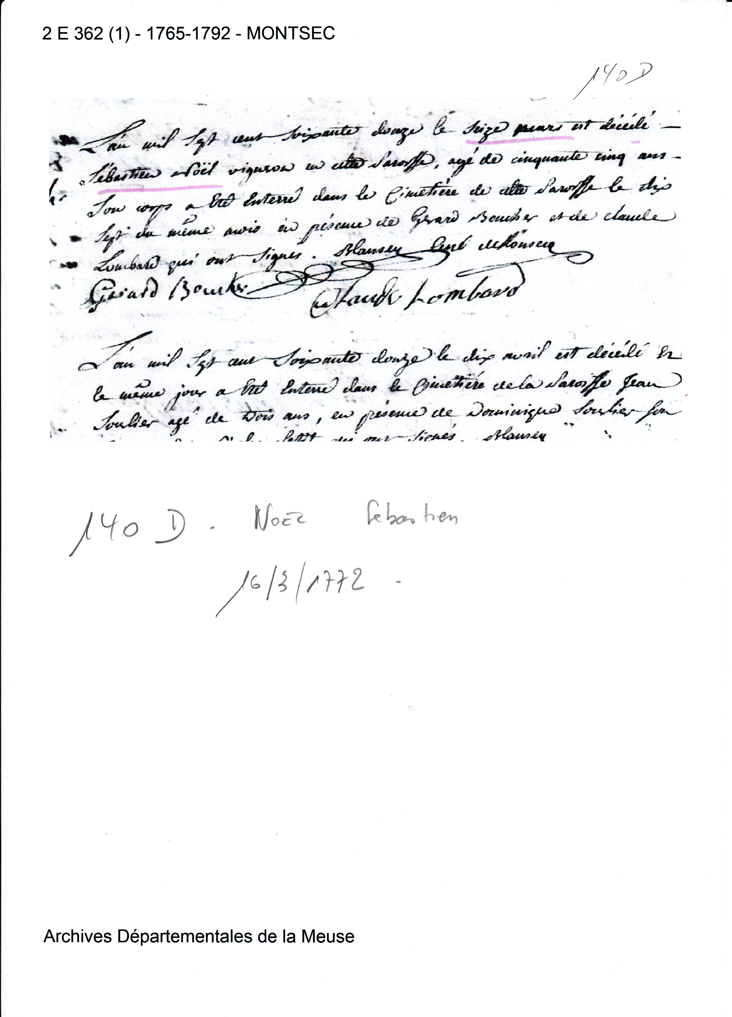 Pas de registreDécès : 16 mars 1772 à Montsec 55300 ( Source )
