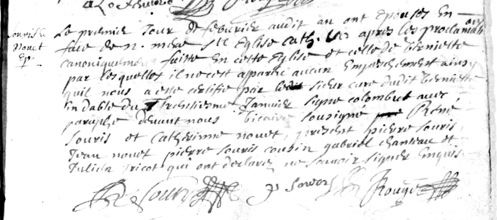 Mariage : 1er février 1689 à Domfront-en-Champagne 72240 ( Source )
