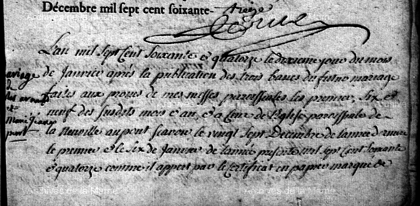 Mariage : 23 janvier 1680 à La Neuville-au-Pont 51800 ( Source )