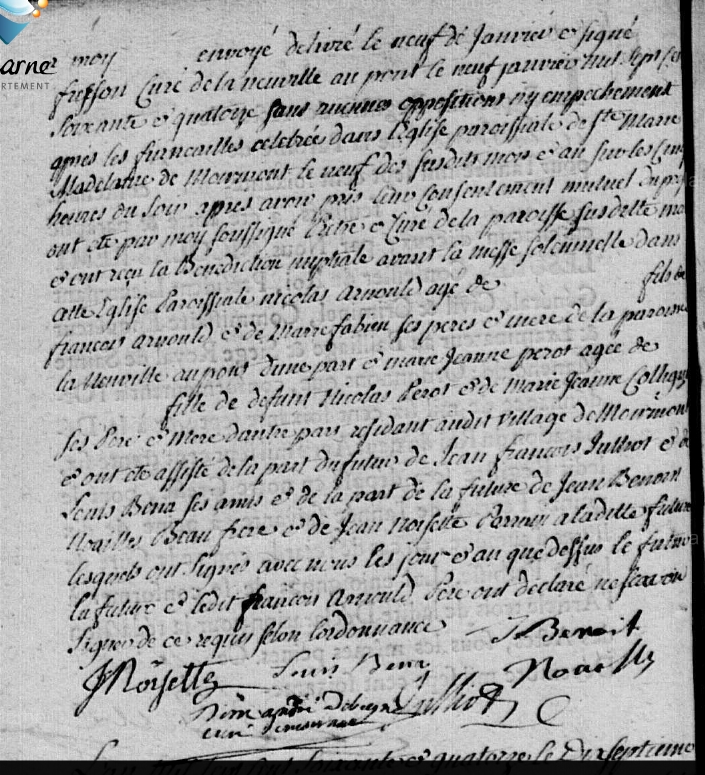 Mariage : 10 janvier 1774 à Moiremont 51 ( Source )