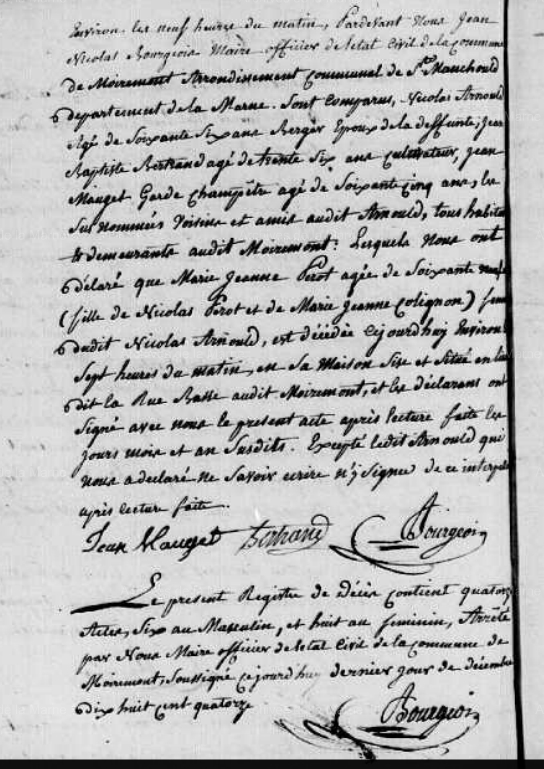 Décès : 16 décembre 1814 à Moiremont 51 ( Source )