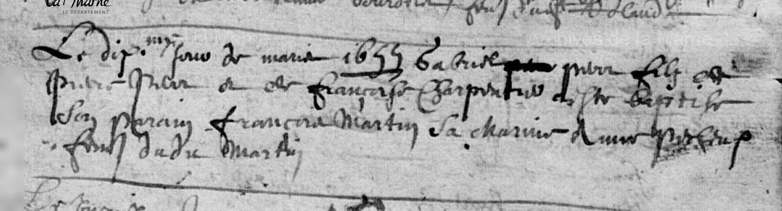 Naissance : 10 mars 1655 à La Neuville-au-Pont 51800 ( Source )