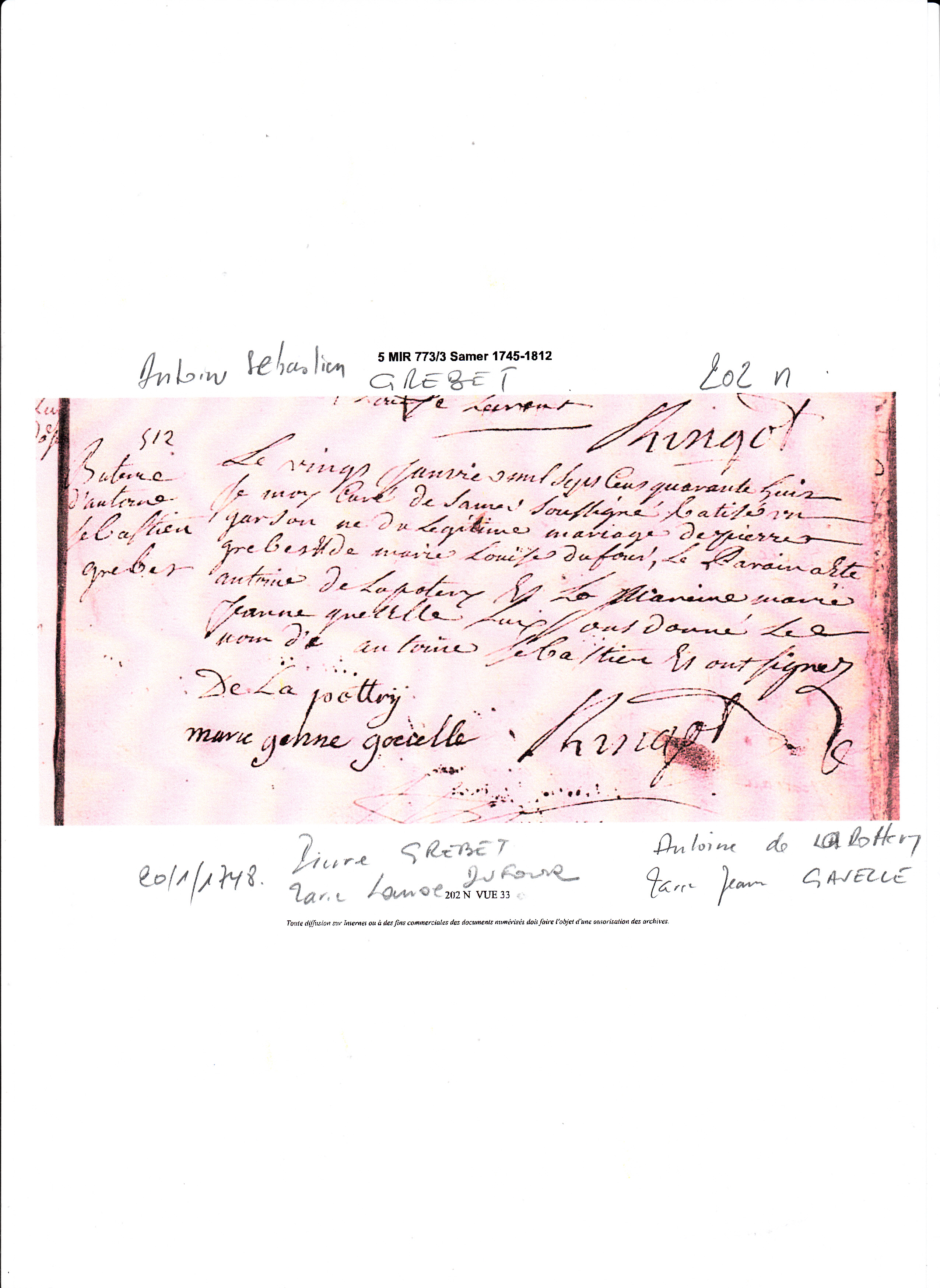 Mère : GRARE Françoise ( 1738 - 1782 )