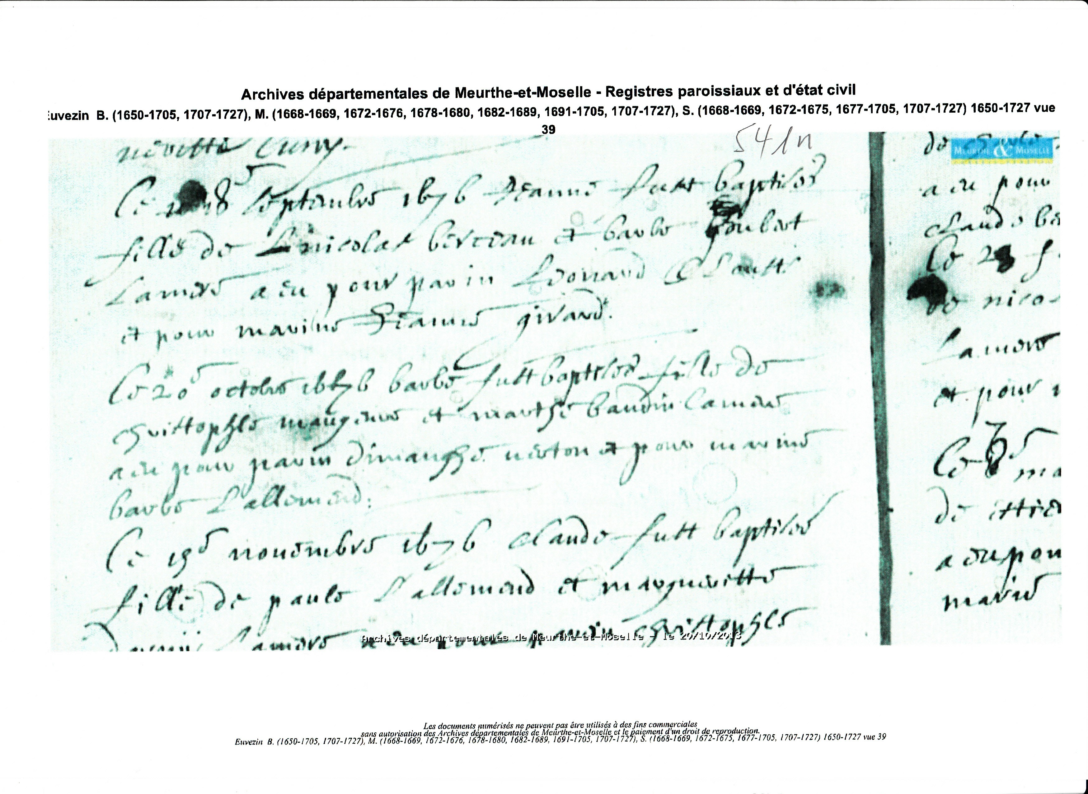 Naissance : 1er janvier 1671 à Euvezin 54470